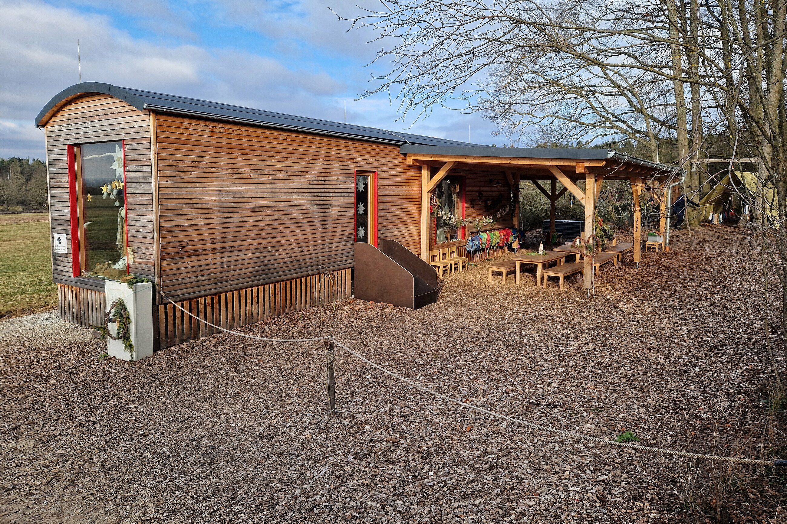 Außerdem bietet unser Waldkindergarten ein Kompost- Klo, sowie einen gemütlichen Bauwagen.